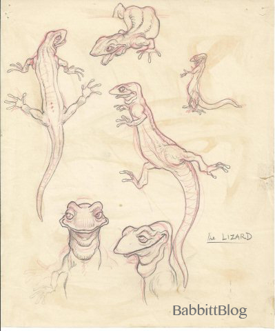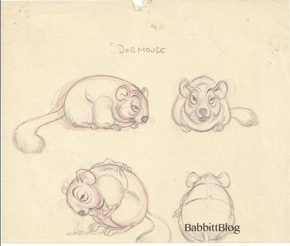 These never-before-seen character sketches were inspiration for the stop-motion puppet builders. They have been yellowed with time and paste, but Babbitt’s drawing versatility is evident among them. This project was produced in Babbitt’s interim between storybook-like Disney studios and the über-stylized UPA studios, and these drawings represent top skill in both those categories.