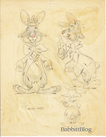 Soon after he left Disney in January of 1947, Art Babbitt got a job as character designer with Lou Bunin on his 1949 film version of Alice in Wonderland (eventually released in 1951). It was to be a live-action actress as Alice and a stop-motion cast of Wonderland creatures. Apparently Bunin had been fired from MGM studios for being a communist sympathizer – sympathetic company for a shunned strike leader such as Babbitt!