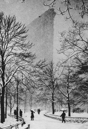 According to the 1924 White Pages and business records (as well as those from ’25 and ’26), the H. W. Simmonds Studio was located on 37 E.28th Street, two and a half blocks north/east from Madison Square Park and the neighboring Fuller Building (Flatiron Building). At the time, this was one of the tallest buildings in New York City, and (probably:) as Arthur walked the four-minute hike to the park for some brisk winter air during his lunch break, he would see the crest of this giant wedge poke over the brown-brick structures to his left. Then, as he turned left onto Madison Avenue, peering through three blocks of dispersed trees of the park, the architectural wonder loomed over the entire skyline. He wandered across the park crossed 23rd street to approach the building, and he heard a sudden shriek. Turning his head, he found a two ladies trying in vain to keep the wild wind currents from blowing their skirts up. Onlookers made sideways glances, and Arthur made a mental note to visit this spot every day.