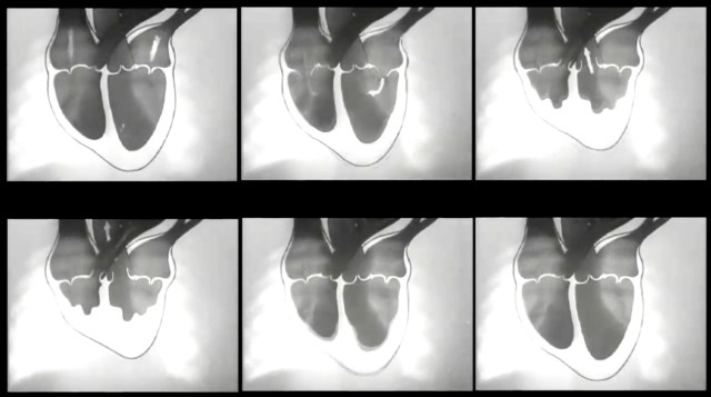 Stills from a medical film of an animated heart pumping blood, produced solely for the medical community