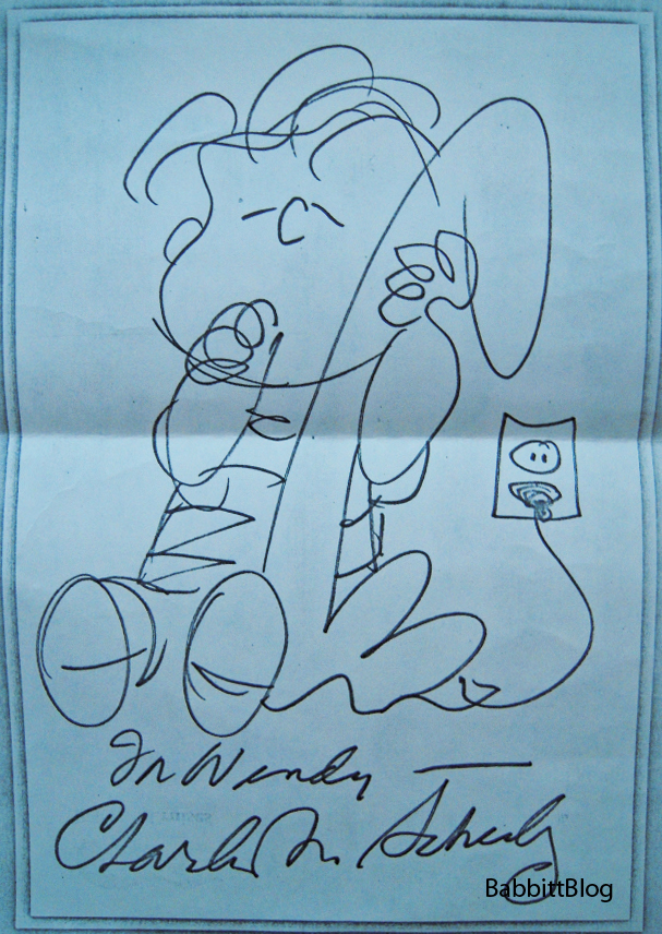 Art Babbitt met Charles Schulz in the early 1970s through their common friend Bill Melendez. Melendez was a Disney animator who became friends with Babbitt through the Disney Strike, and went on to direct all the Peanuts and other TV specials. Charles Schulz (aka “Sparky”)’s friendship with Art and his wife Barbara continued for years, with visits, letters and drawings.