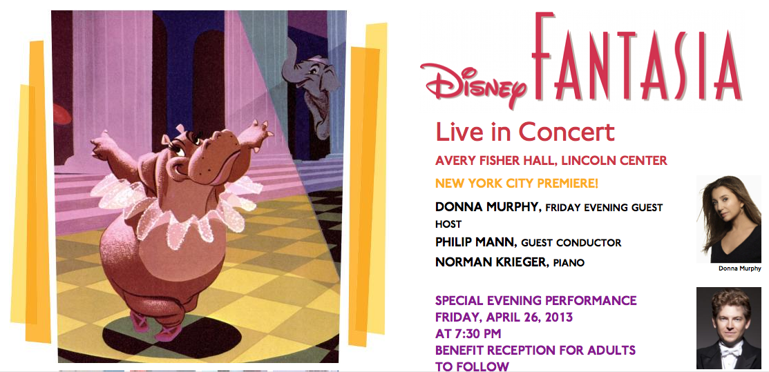 View animation from Disney’s golden age, side by side that of today’s generation. Sequences from Fantasia and Fantasia 2000 will be screened at Lincoln Center in New York City, accompanied by a live symphony orchestra . By your tix today!