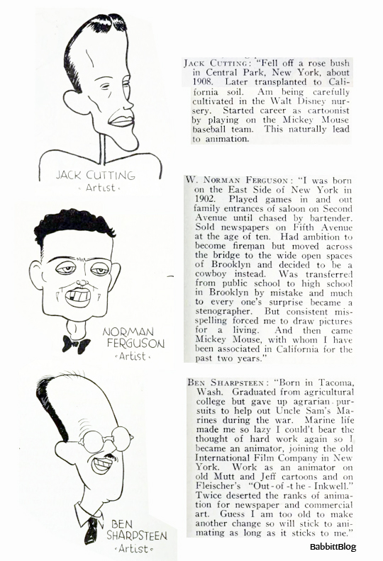 Next up from Motion Picture Daily: Jack Cutting recognizes his nanny, Norm Ferguson pays homage to his New York roots, and Ben Sharpsteen shrugs his way through success.