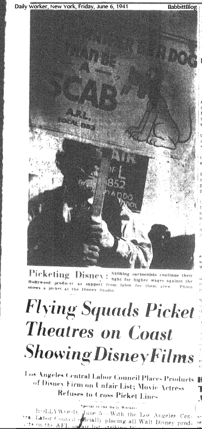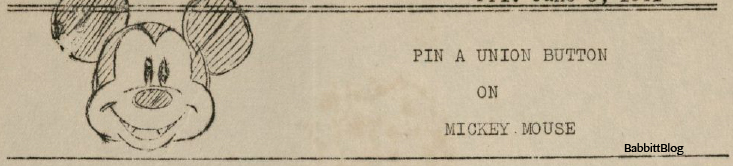 On this date in Disney history, the Walt Disney Studios was spotlighted for the U.S. government’s list of companies with Unfair Labor Practices (ULP). As the Daily Worker trumpets, “Los Angeles Labor Council Places Products of Disney Firm on Unfair List”.