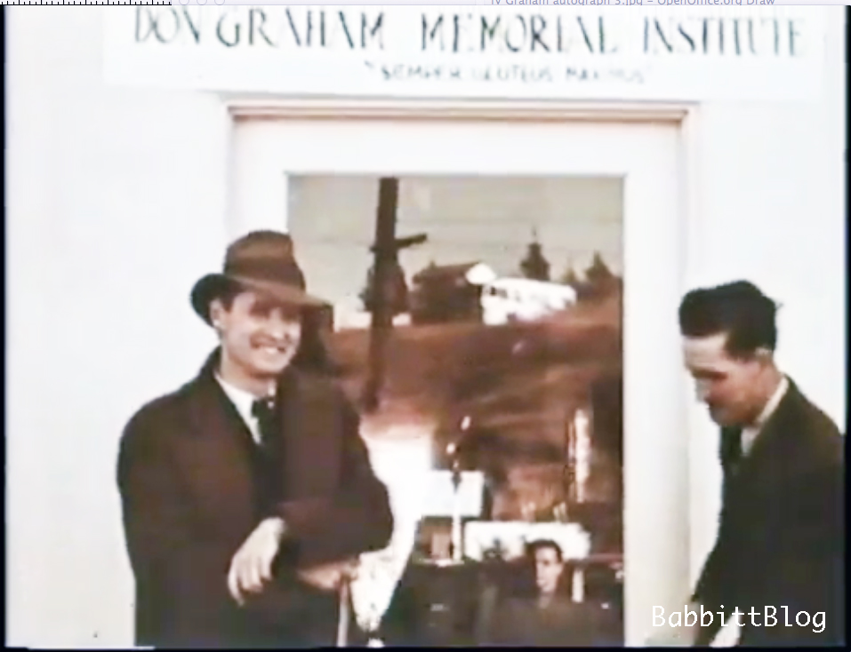 When the annex was build opposite the original studio on Hyperion Avenue, one of its uses was to house the drawing classes. The animators cheekily christened it “The Don Graham Memorial Institute” displaying its credo, “Semper Gluteus Maximus.” Babbitt captured the event with his 16mm camera.